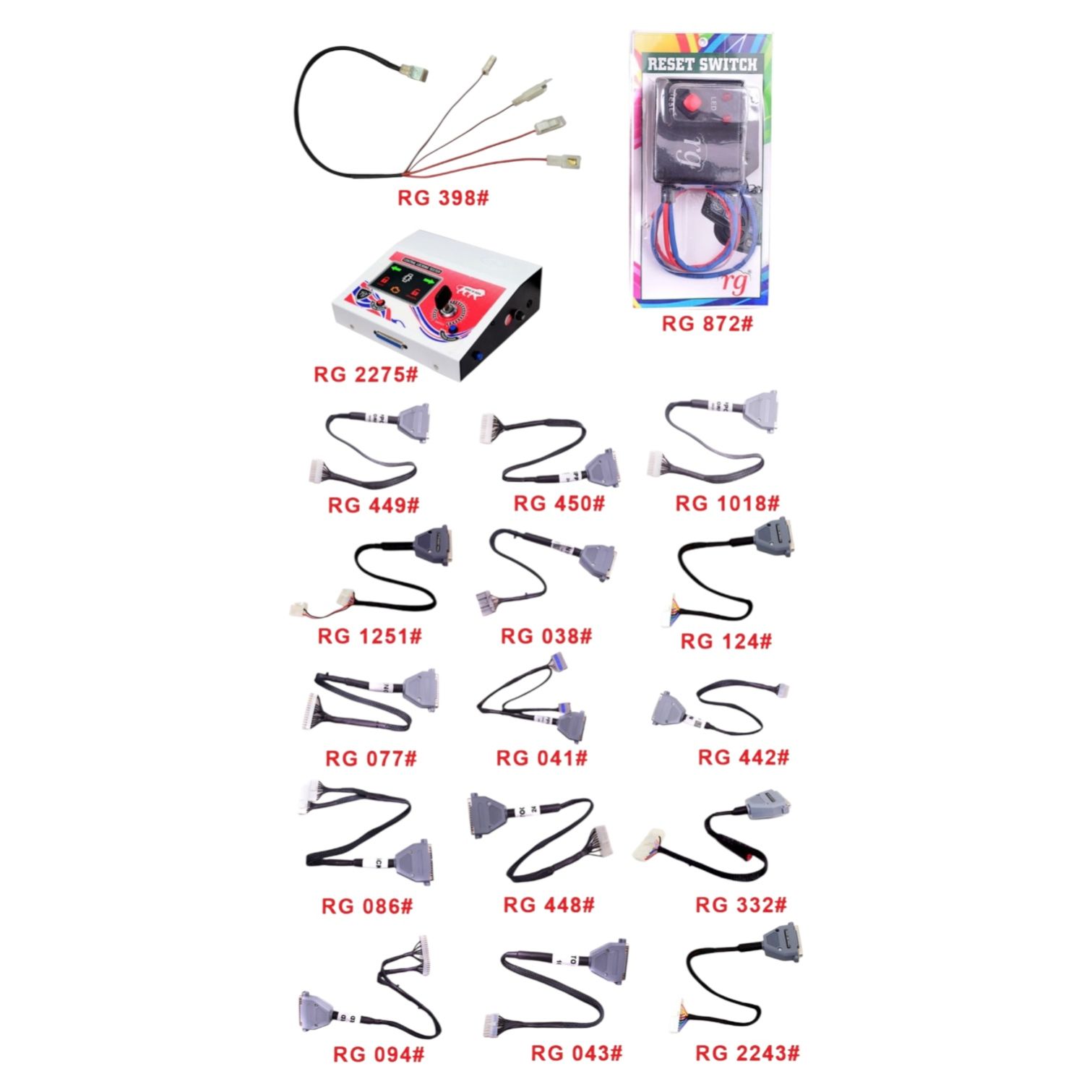 The Central Locking Tester Full Kit is an all-in-one tool for testing and diagnosing the functionality of central locking systems in vehicles. It includes various probes and adapters for connecting to different types of locking mechanisms, as well as a remote control tester for checking key fob signals. The kit is compact, portable, and easy to use, making it an essential tool for automotive technicians and mechanics. With the Central Locking Tester Full Kit, you can quickly identify any issues with a vehicle’s locking system and perform necessary repairs, saving time and money 1. 398# Tata safari Learing Wire 2. 870# Main Unit 3. 872# Reset Switch 4. 449# Nippon 18 Pin 5. 450# Nippon 24 Pin 6. 1018# Autocop 18 Pin 7. 251# After Market Minda 8. 038# Nippon Single Cupler 9. 124# Crosslink Wheels 10. 077# Xenos 15 Pin 11. 041# Nippon Double Cupler 12. 442# Bolero Minda 13. 086# Blackcat 14. 448# Autocop 24 Pin 15. 332# Tata Safari Dicor, Tata Venture, Tata Sumo Gold 16. 094# RD Old 17. 043# Autocop 16 Pin 18. 2243# New RD